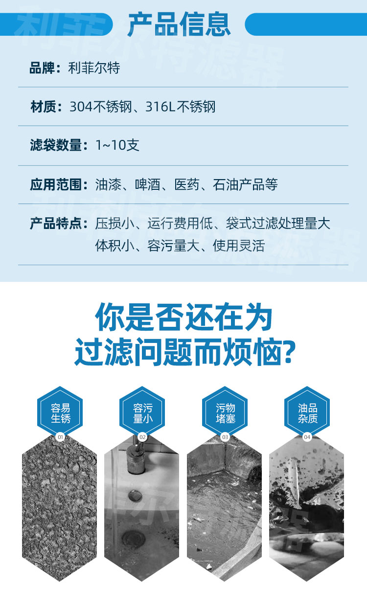 利菲尔特精密304袋式过滤器大流量工业设备多袋过滤