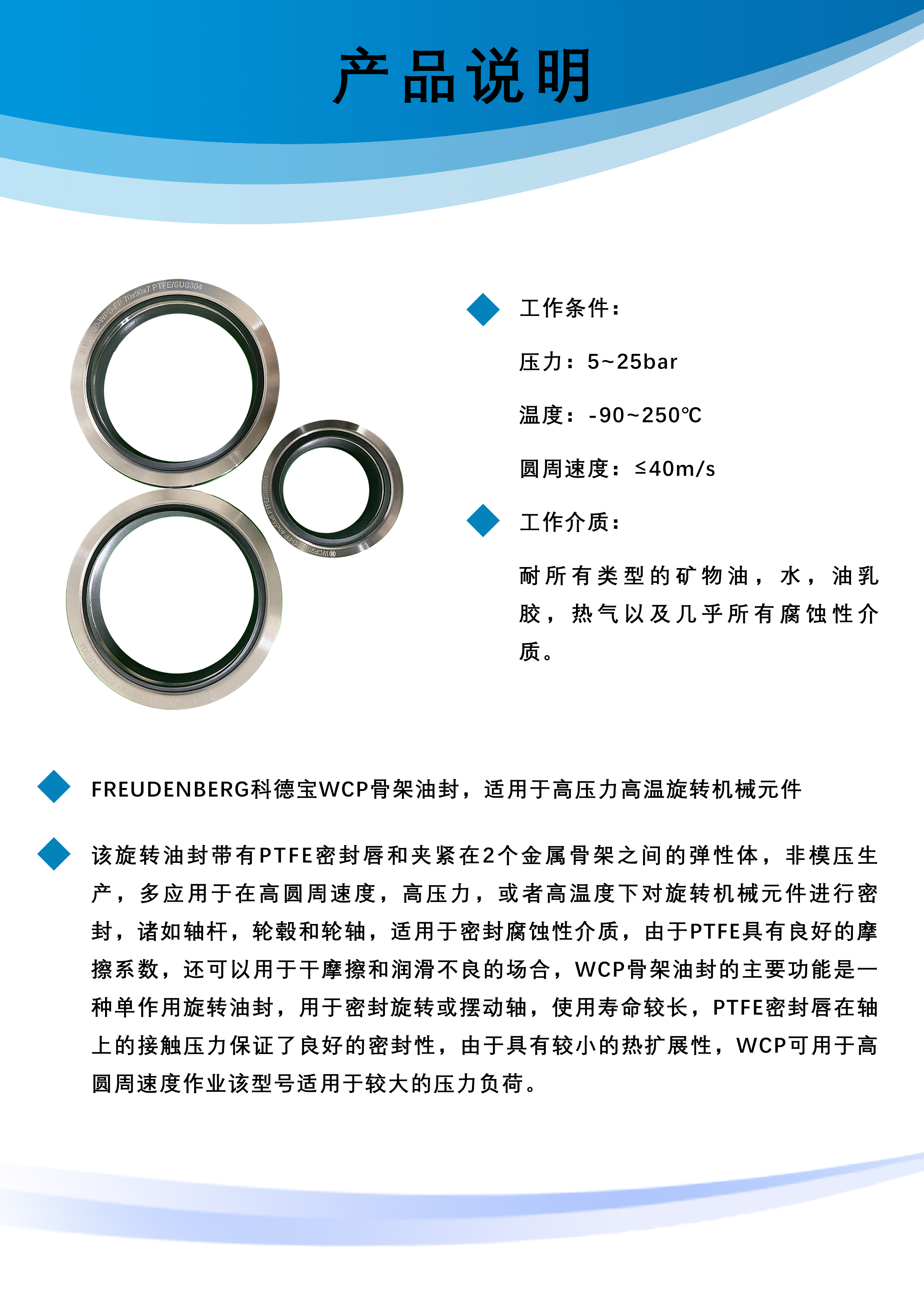 FREUDENBERG科德宝WCP骨架油封,适用于高压力高温旋转机械元件