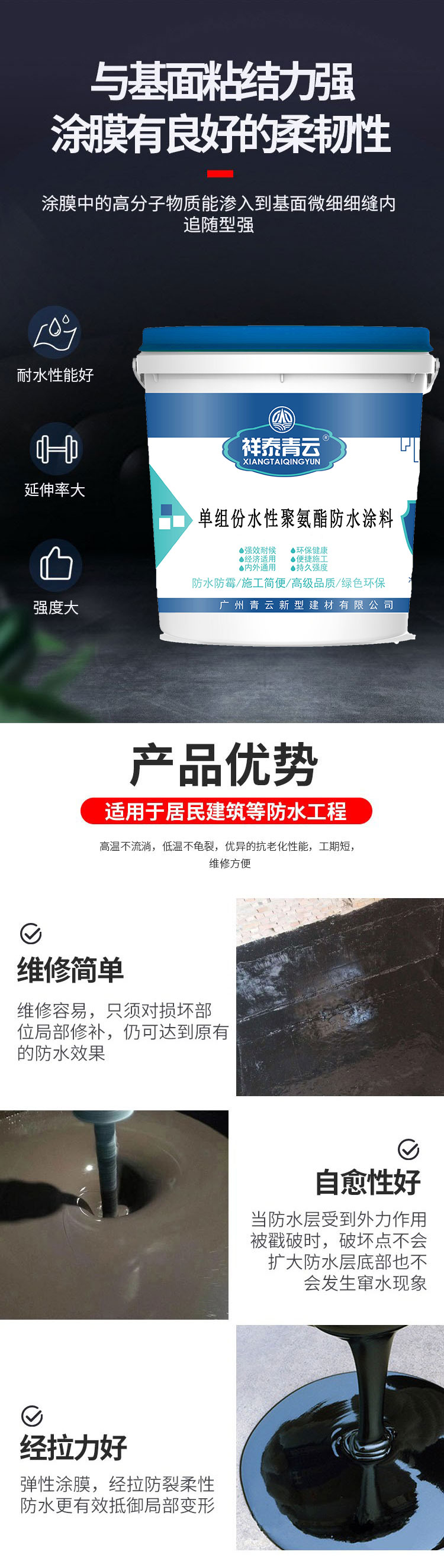 单组份聚氨酯防水涂料耐候性粘结力强耐候性好施工操作简单