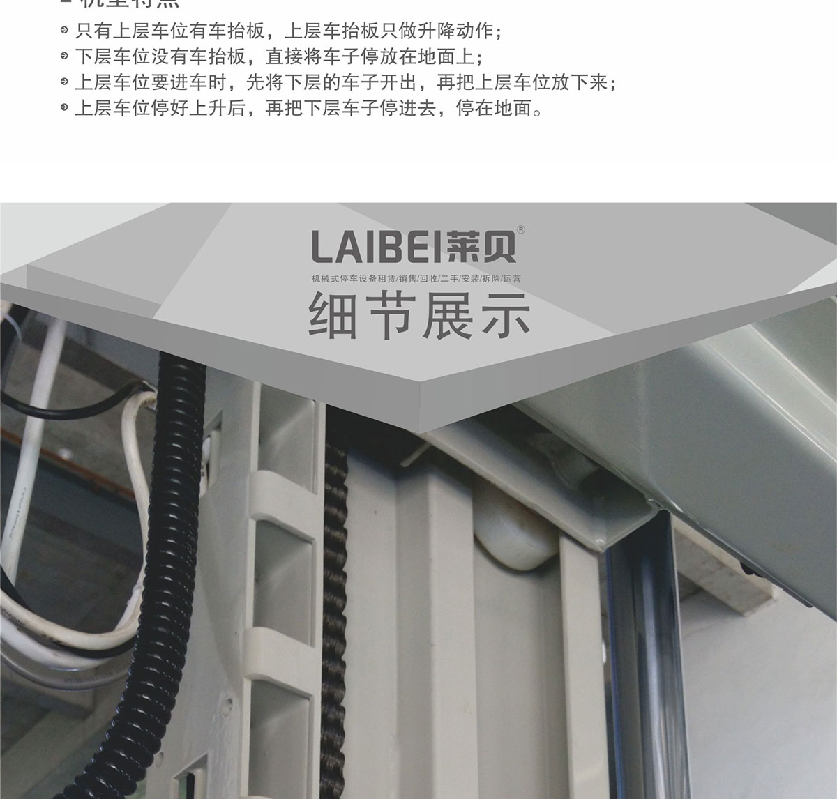 四川莱贝停车设备有限公司致力于立体停车租赁、电动立体车库、停车设备出租、机械停车设备销售、机械式立体车库设备经营租赁、立体停车场投资建设、停车场经营管理、停车场规划设计、停车场施工建设、共享停车、盘活停车场、收购停车场、租赁停车场、收购停车位、出售停车位、停车资产金融管理及互联网停车软件开发车主服务等领域。我们为机场、车站、商场、大学、住宅、酒店、p r停车等各种停车类型,从一个停车场一个区域到一个城市提供停车位投资经营解决方案。公司业务特色鲜明,在市场营销、风险控制、人力资源管理等方面均衡发展,形成覆盖全国的业务网络,建立了科学的管理模式。公司与多家金融机构、设备制造商、服务团队、停车管理等多家企业形成战略合作关系,抓住历史机遇,在尽可能短的时间内,做大做强做出品牌。不断设计并优化停车场方案,为客户提供多元化的立体停车场投资经营以及技术支持服务,致力于成为国内立体停车场投资经营提供商。为了响应快速发展的停车需求和引入社会资源优化停车产业结构的号召,莱贝停车设备配合政策,解决城市停车难题,将未来停车产业推向新的领域。公司利用人才、技术和设备优势,租赁一系列适合国情的产品。主要有:立体停车租赁、电动立体车库、停车设备出租、简易升降式、升降横移升降式等。该产品具有占地面积少、空间利用率高、安装方便、能耗低、噪音小等特点,适用于各种场地和建设要求。公司为客户提供立体车库规划计划、施工设计、安装调试、运营培训、技术支持售后、机械停车设备销售、租赁、回收等多项服务。