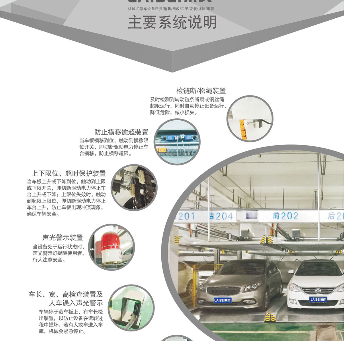 LAIBEI莱贝主要有:立体停车位租赁、智能机械车位、立体停车设备收购等。机械式立体车库是现在一种常见的停车设备,目前来说更的机械停车设备按结构划分的话,能够分为升降横移式、垂直升降式、平面移动式和垂直循环式等,而它们在现代的生活中的实用,受到了大众的。那么,您知道机械停车设欢迎的原因有哪些吗?1.能为建造者节省占有面积和建设费用机械停车设备由于采用了立体的机械设计,就让设备不但能够存取更多数量的车,而且独到的设计也能让设备占有面积更小;再由于真实机械停车设备的整个建设并不需要土砖材料,因此也能降低整个建设成本的投入。并且设备由于采用了工艺设计,取消了原来机械设计中的“窄门”等一些不的设计,现在车辆无需进行拐弯和倒车就能直行停取。2.简单服务完善的机械停车设备由于采用了的单片机控制设计,不但能让设备的机械运动更简单,让普通电工也能轻松维护,而且这种的设计在长时间使用后,在设备处加次黄油就可以了,让整体设备不但而且更经济实用。3.安全和机械停车设备的之处也并非是采用了多么复杂的系统和操作,而是多采用了一些简单和实用的结构设计,这样设