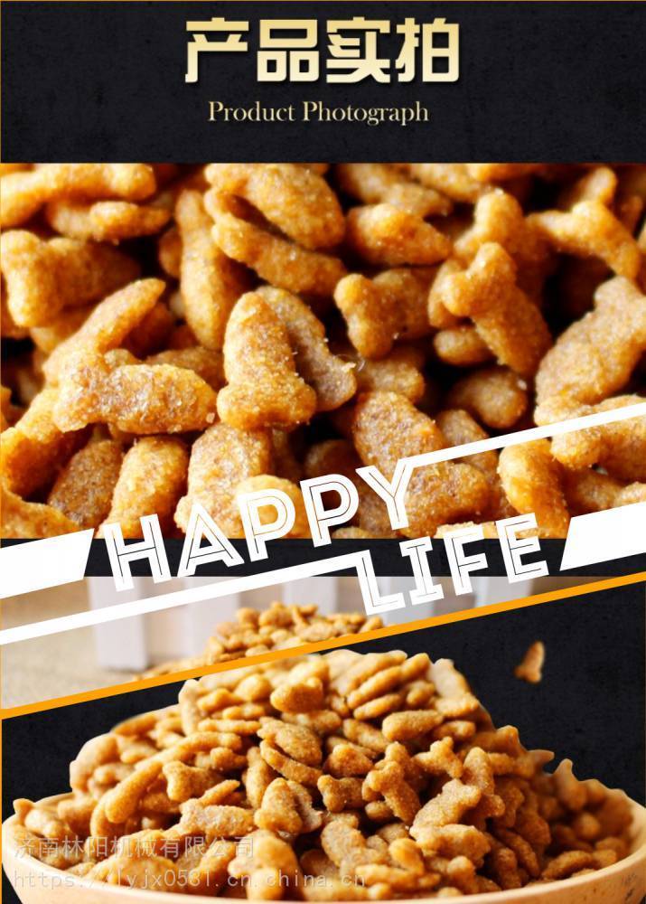 一、工艺流程:原料配制→拌料→输送→挤压膨化→输送→干燥→喷油→调味→包装