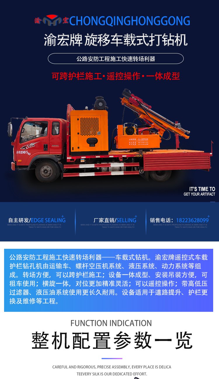 渝宏旋移车载式打钻机高效钻孔安防机械高速钻孔机