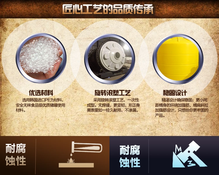 PE化工储罐聚乙烯(PE)为原料,采用特殊工艺整体一次成型(滚塑成型工艺)。这种塑料储罐在生产中没有使用任何添加剂、塑料填料,完全由聚乙烯(PE)材料加工制作而成,储罐具有无焊接缝、不渗漏、无毒性、重量轻、抗老化、抗冲击、耐腐蚀、寿命长等优点,其价格低于不锈钢储罐、普通玻璃钢储罐,使用寿命更长。