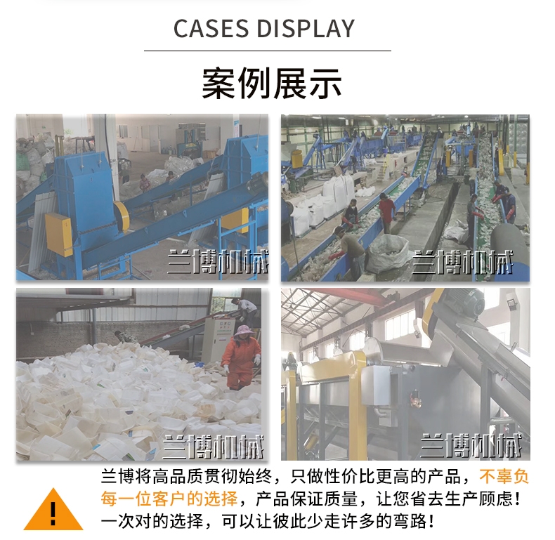 东莞市兰博机械有限公司专注于塑胶制品的回收与清洗,为实现废旧塑料资源再生化,自兰博成立便致力于研发和生产各类废塑料再生处理设备,我们的产品配置线涵盖了PMMA亚克力板材无水破碎生产线、HDPE/PP低压浮水硬料回收处理生产线、PET卷材烫金镀铝膜水粉回收清洗线、ABS/PS家电外壳回收处理生产线、LDPE薄膜/PP袋回收清洗生产线、PET 聚脂瓶脱标水粉回收处理生产线、PS/PVC管材、片材回收处理生产线及各类软膜卷材料处理生产线。公司专注于废旧塑料回收市场的动向及行情,对废旧塑料的品类针对性的配置研发各类塑料的清洗流程,更多塑料回收方案请联系兰博机械,我们将为您提供针对性的解决方案,为您的回收与生产提供更专业的技术支持!