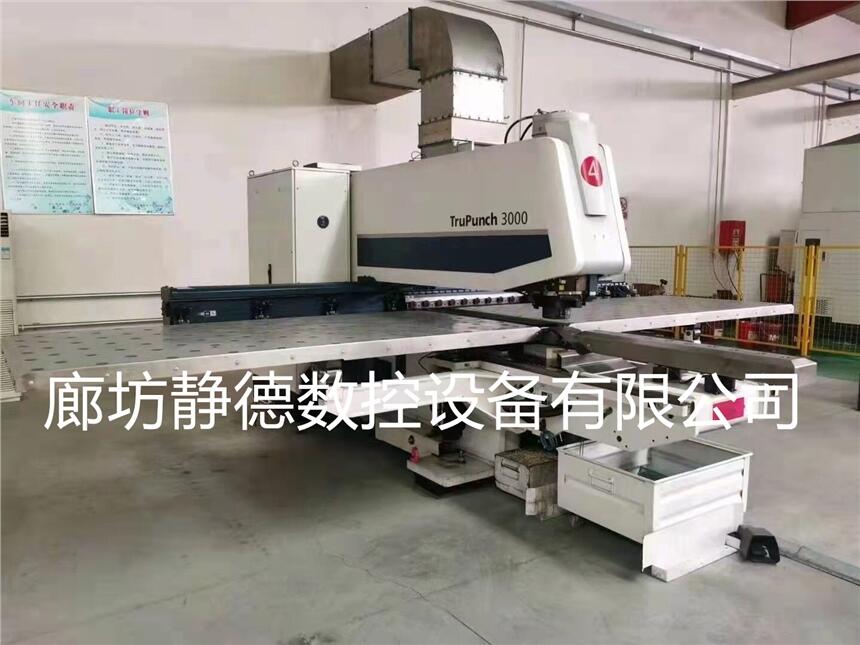 出售转让_高性价比_精品二手德国通快 TRUMPF 伺服 数控冲床、伺服数控转塔冲床,型号:TruPunch3000,板材加工尺寸:1270*5000,每个磨具均可360度旋转,每分钟冲次900--2200次,伺服式,速度更快,更省电,更节能环保!本机可以进行滚筋,打标,刻字,百叶窗,拉包,单双桥等特殊工艺加工。已调试完毕,可现场试机、现场绘图、现场打板、现场尺测精度,保证正负十丝以内的新机精度。所售设备包安装、调试、培训,保修三个月,24小时技术支持,终身配件供应,免费赠送编程软件,终身免费维护,机会难得,预购从速。廊坊静德数控设备有限公司   销售顾问 :田永强13785632893可加微信。