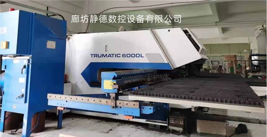 出售转让_高性价比_精品二手 德国通快 TRUMPF6000 伺服 数控冲床、数控转塔冲床,型号:TruPunch6000, 板材加工尺寸:1270*5000,每个磨具均可360度旋转,每分钟冲次900--2200次,21个刀库,伺服式,速度更快,更省电,更节能环保!本机可以进行滚筋,打标,刻字,百叶窗,拉包,单双桥等特殊工艺加工,本机配备自动上下料装置,更节省人工,效率更高。每台设备到 店都要进行30多项检测,各项功能性能达到新机精度方可出售!已调试完毕,可现场试机、现场绘图、现场打板、现场尺测精度,保证正负十丝以内的新机精度。所售设备包 安装、调试、培训,保修三个月,24小时技术支持,终身配件供应,免费赠送编程软件,终身免费维护,机会难得,预购从速。廊坊静德数控设备有限公司 销售顾问 :田永强13785632893可加微信。