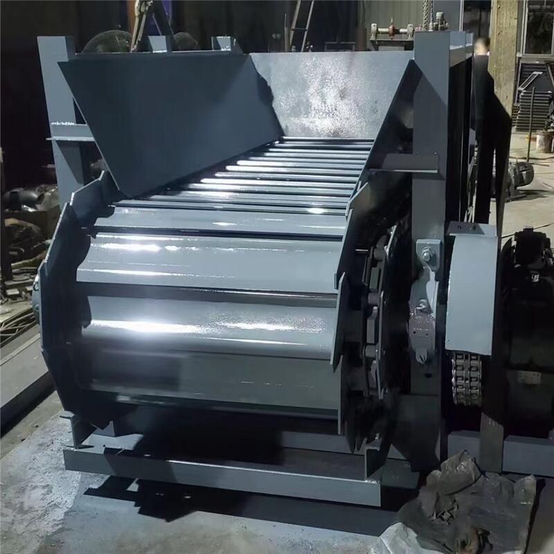 鳞板输送机具有结构简单、运行可靠、使用寿命长,安装维修简单等特点,对物料粒度、块状、工作环境 无特殊要求,运送单个物料(件)的重量可达70-120kg,输送机长度可达40-80米且允许25°倾角输送。鳞板输送机可用于沿水平或倾斜方向由储仓向破碎机、输送机或其它工作机械输送各种块状或松散物料。有轻型和重型之分。