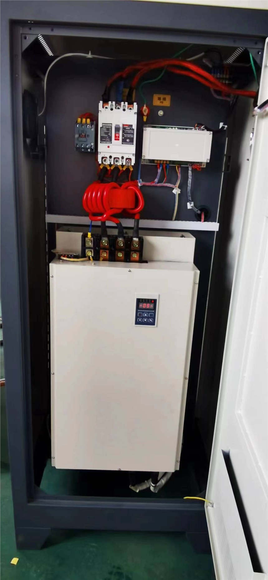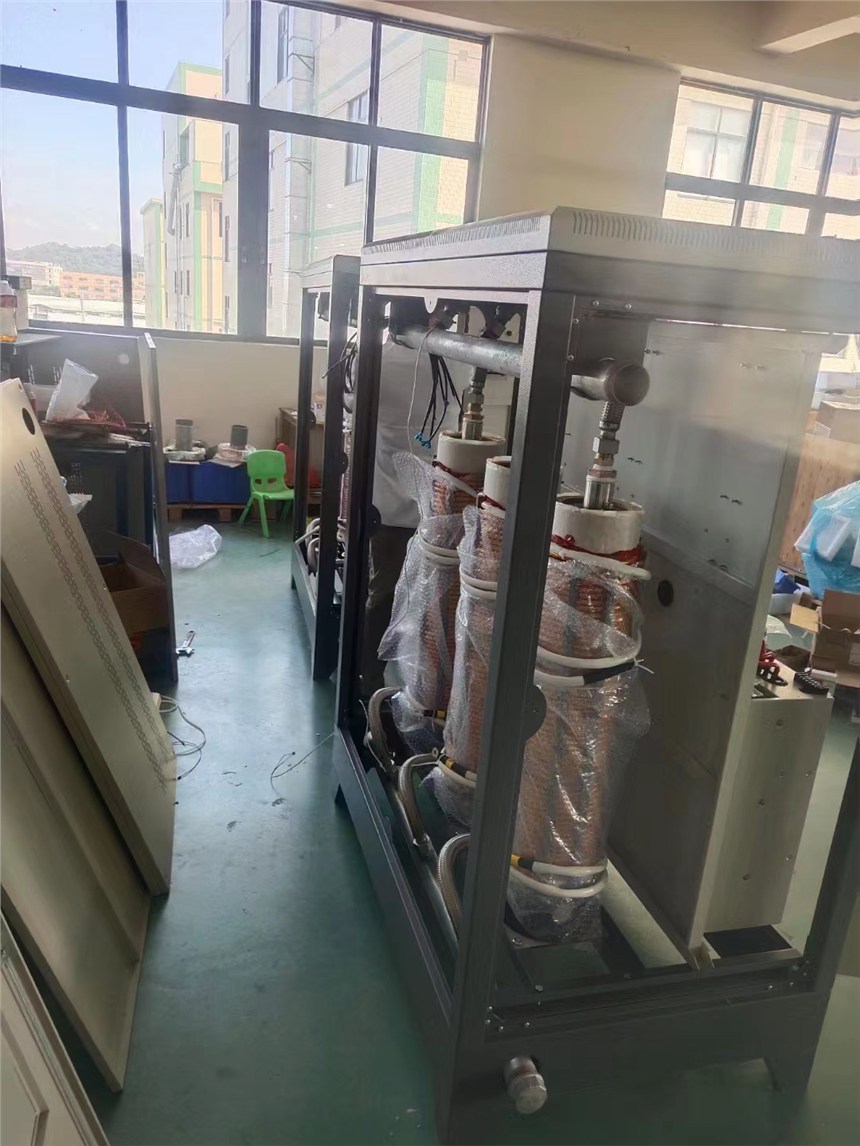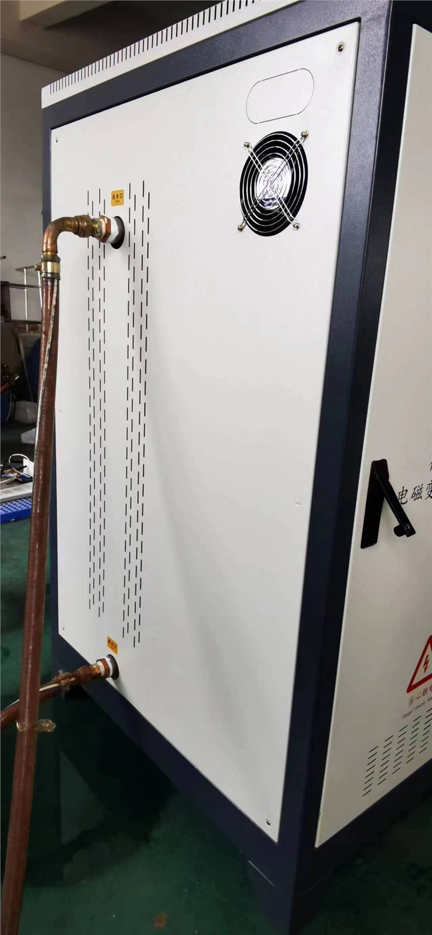 1、优化电路设计,采用单组100KW电磁加热器,全桥电路,IGBT模块,将常规的380V的50HZ频率变频为工频20000HZ,经过电磁导线绕组在碳钢炉筒外,中间经过保温层隔热保护,水电分离,感应加热;