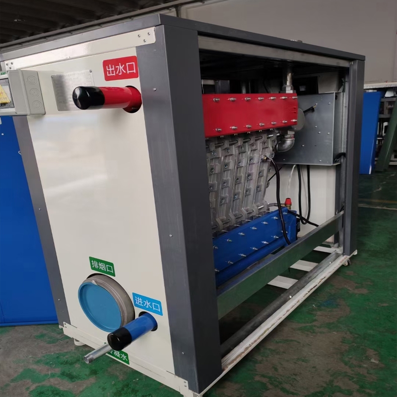 采用全预混前预混燃烧技术,在燃烧前燃气与空气预先混合后,经金属纤维燃烧头喷出燃烧,形成表面燃烧的短簇火焰,空燃比控制,实现对过氧空气系数的优化,抑制热力型氮氧化物与快速型氮氧化物的生成,烟气中的氮氧化物含量低于30毫克,排烟温度低至50度左右;