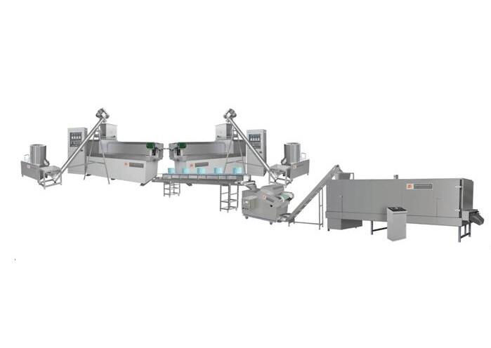 拌粉机→上料机→膨化机→风送机→压片机→风送机→多层烤箱→(包装机)