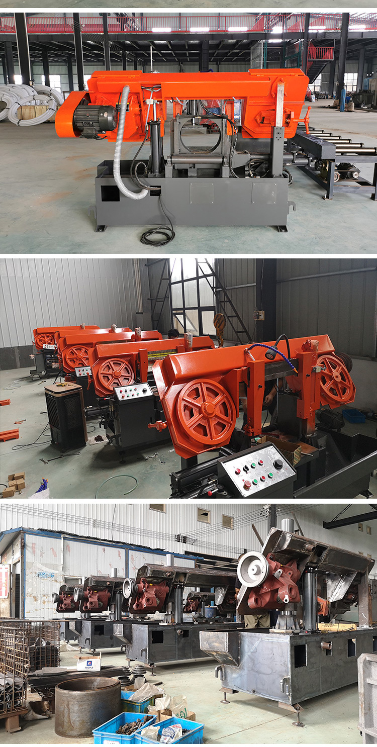 1.本机采用技术,双立柱结合,保证导向精度,锯削可靠。 2.虎钳,锯切下的工件不会松动,避免压损锯带,保证锯带。 3.钢刷清屑,有效清理锯齿间铁屑,锯带使用寿命。 4.锯床传动机构精密平衡校正,振动确保锯带不易断齿,拉齿。 金属切割带锯床 电动液压钢筋专用带锯床 全自动圆钢切割锯床