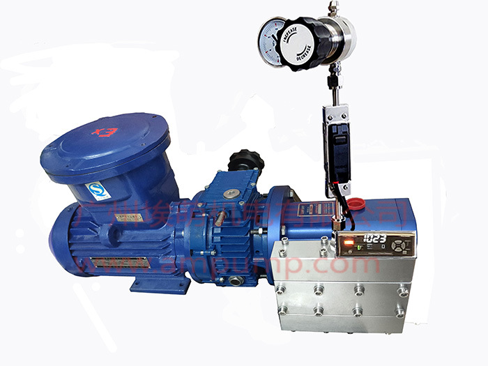 广州埃萌推出的这款多柱塞高压隔膜泵,实际上是一种高压无脉动精密计量泵。