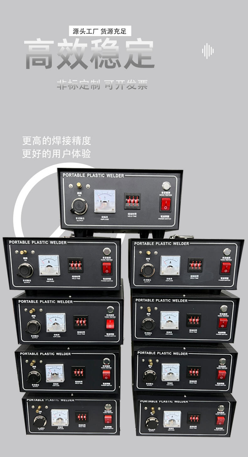 东莞浩焊超声科技有限公司专业生产销售15khz 2600w超声波焊接机,热铆机,旋熔机,超声波模具,深圳超声波加工,超声波压花,塑胶热熔机,东莞超声波熔接机。浩焊超声波科技是一家专业从事塑胶焊接设备技术开发、生产、销售、服务为一体的综合性企业。公司全体同仁秉承团结务实、努力拼搏、不断创新的精神,在超声波、高周波、电热式、旋转式塑胶焊接及非标制作焊接技术领域博采中外技术之精华,以“创一流产品”为质量目标、“树诚信经营”为服务宗旨,不断追求更高的目标,挑战自我、超越自我,致力成为业界精英并领先同行。 我们将一如既往以优质的产品、合理的价格、及时周到的售后服务热情忠实的与您合作、为您服务。欢迎您与我们共同研讨,共同发展。
