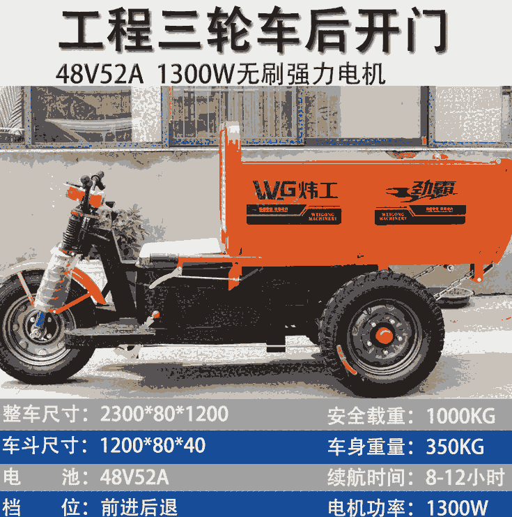 工程电动三轮车主要用于引水洞里面进行装渣出料作用,代理了拖拉机和农用车,矿用三轮车具有体积小,装运量大的优点。适用于矿区建筑使用。工程三轮车外形美观、设计精巧,性能精良、驾乘舒适,是砖窑厂、耐火厂、面粉厂,选矿厂,化工厂、炉料厂、建筑工地等运输装卸散装物料;社区、街道、环卫、遂道工程等运送垃圾,土方,施工器材;红砖厂、砌块砖厂用来运煤、炉渣、清窑渣、清道也是养殖场运送饲料、清运粪便垃圾的理想又节能环保的运输工具。