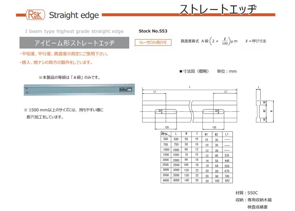 日本RSK新泻理研 I型直定规 高精密553-1000Q 半导体直规 0级1级