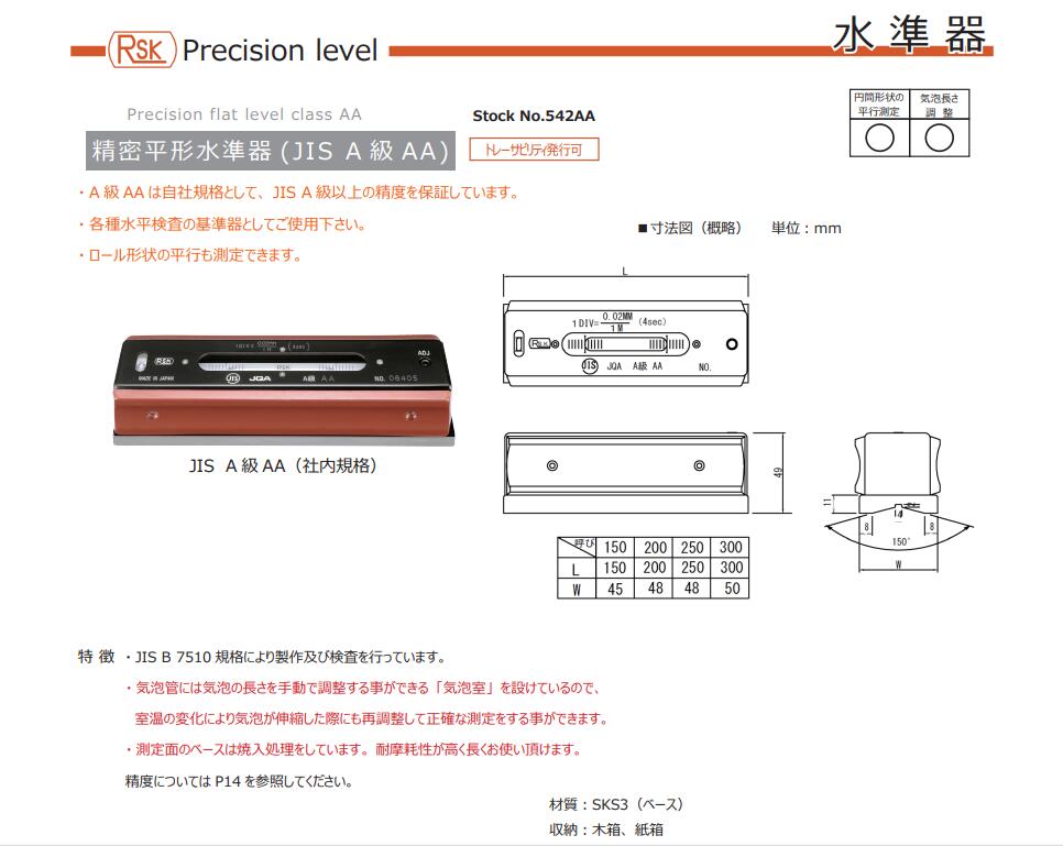 日本新泻理研RSK 条式水平仪 JIS 气泡便携式水平尺 542-2002AA