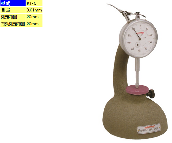 日本PEACOCK孔雀 0.01mm测厚仪 R型小测试台 R1-C原装正品
