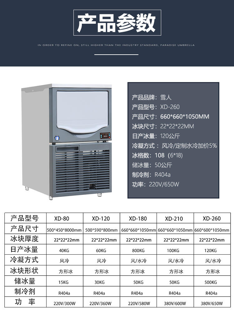 SNOWSMAN雪人制冰机XD-180方形冰80kg奶茶店冷饮店冰块机