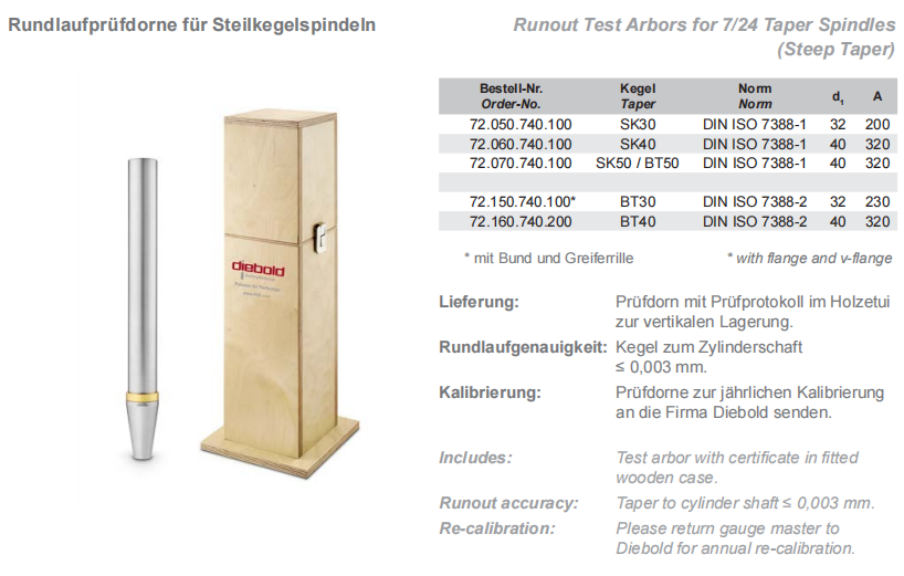 德国戴博DIEBOLD主轴检测棒SK40机床专用跳动检测棒现货直发