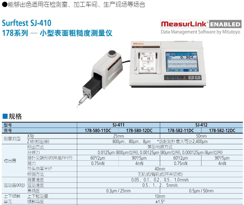 日本Mitutoyo 三丰粗糙度仪178-580-11DC表面粗糙度测试仪SJ-410