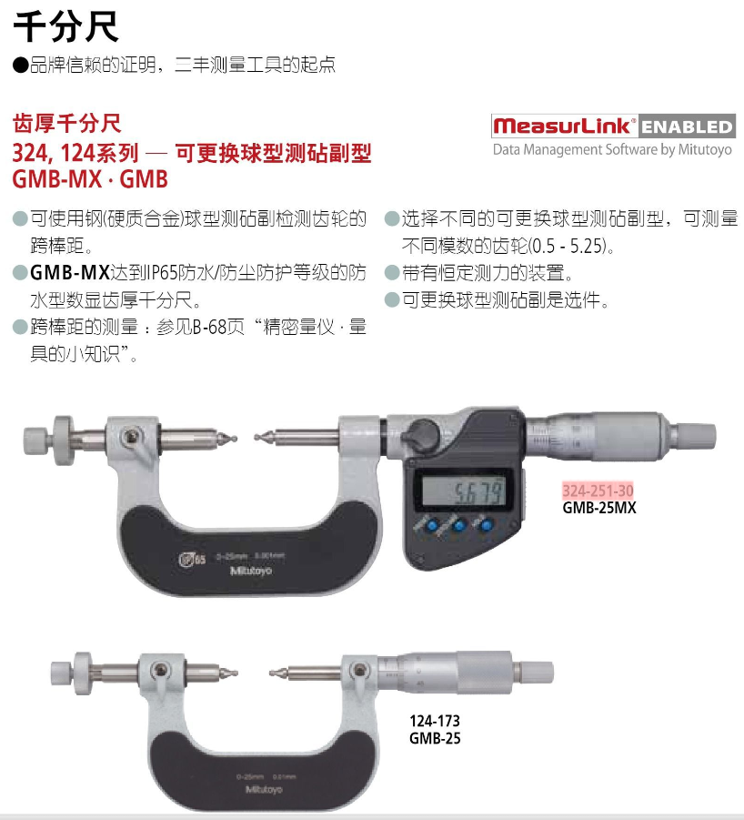 日本Mitutoyo三丰 可换测砧齿轮千分尺 324-252-30 齿轮千分尺