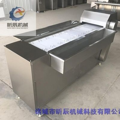 多功能分切机可分切多种产品,如:鸭脖,鸡脖,牛蒡,鸡爪,刀鱼,猪尾,玉米,萝卜,山药,莲藕,牛皮棒,药材类长条产品切段,鸭头,鸡架,凤爪,椰子分半切割,玉米,洋葱切头切尾,各种蔬菜切根等等。并可根据要求定制切割产品及尺寸。