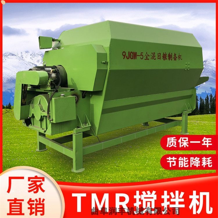 粮饲料搅拌机,TMR饲料制备机,TMR饲料混合机、TMR搅拌机,是一种集粉碎、搅拌混合于一体的饲料加工设备。目前多用于牛场、羊场等动物养殖场。按设计结构分:卧式和立式饲料搅拌机。