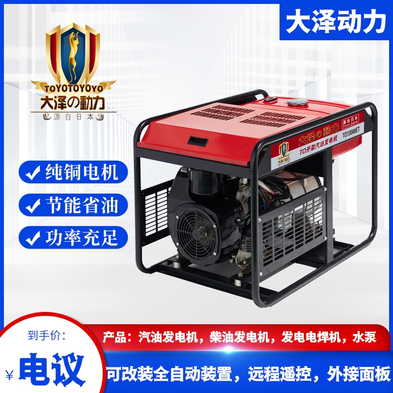 12kw便携式汽油发电机的发展方向应该是节能、环保、轻型化、小型化、美观大方。这样才能发挥出发电机组的潜在优势。放油的地方始终保持干净以防溅油,我们推荐:场地周围可放小颗粒状矿物吸收剂,但不要用细颗粒砂子。然而,像这些吸收剂,同样吸收湿气,这在有电的地方是危险的,研磨剂也是。它们应该与灭火设备隔离放置,工作人员应该注意,吸收剂、研磨剂在汽油发电机组上或联合分配设备上不能使用。冷却空气能绕着干燥剂流动。