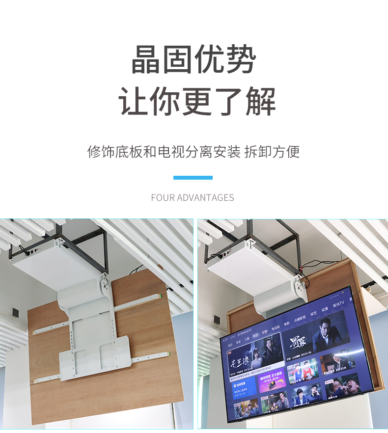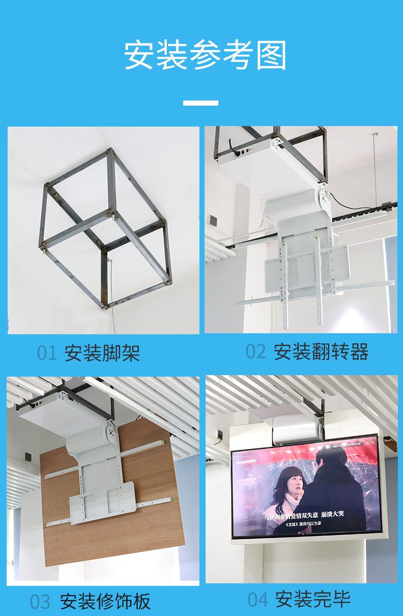隐藏式电视折叠吊架42-75寸翻转挂架天花齐平电动升降吸顶架