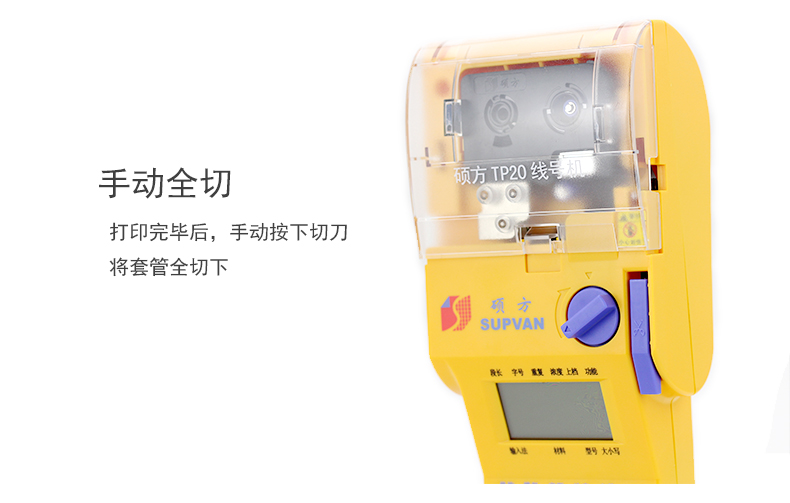 方便轻巧,便于携带,适合施工现场使用; 可安装电池,随时随地制作线缆标识; 较大的LCD显示屏,流行的蓝色背光设计; 打印的范围更大,可打印8平方的PVC套管。