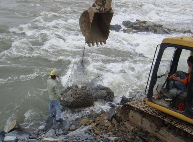 1基础质量控制。格宾石笼与基础面的接触非常重要,尤其当铅丝石笼处于动水中,流水会冲刷掏空基础,导致铅丝石笼失稳,因此必须重视基础的开挖及处理。