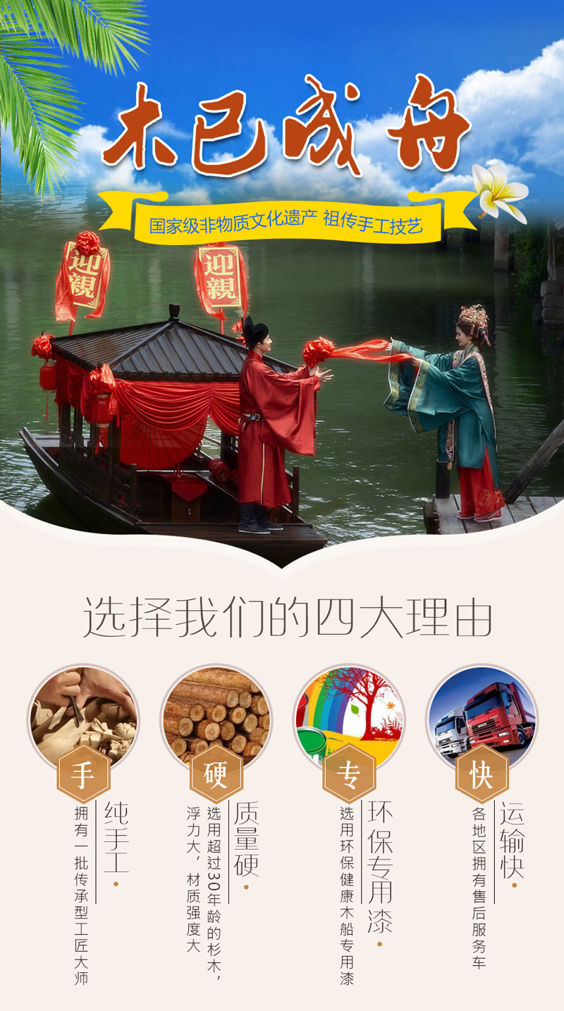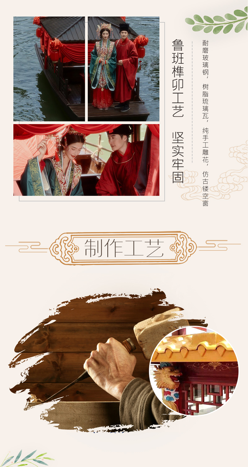 厂家定制电动摇橹仿古单亭迎亲船观光旅游餐饮婚纱摄影