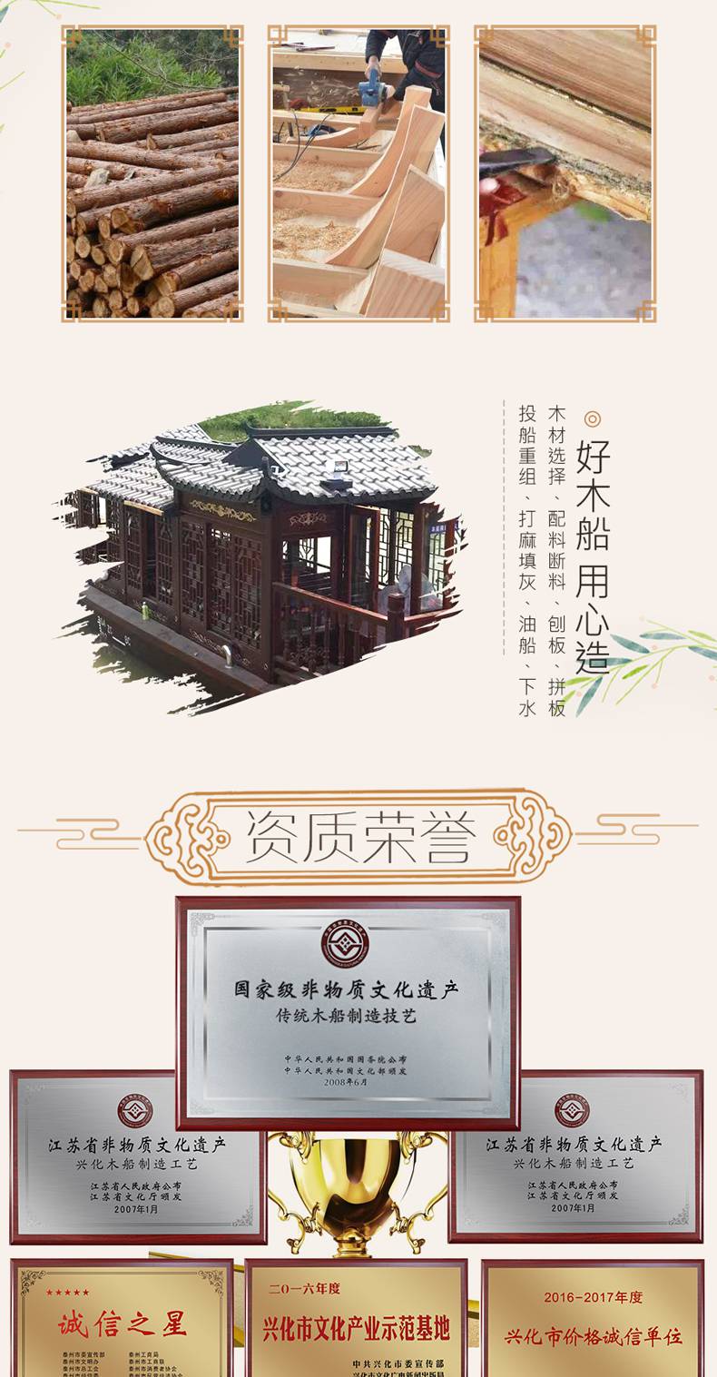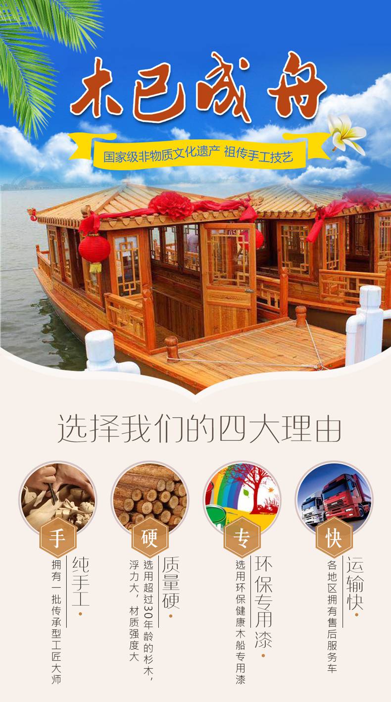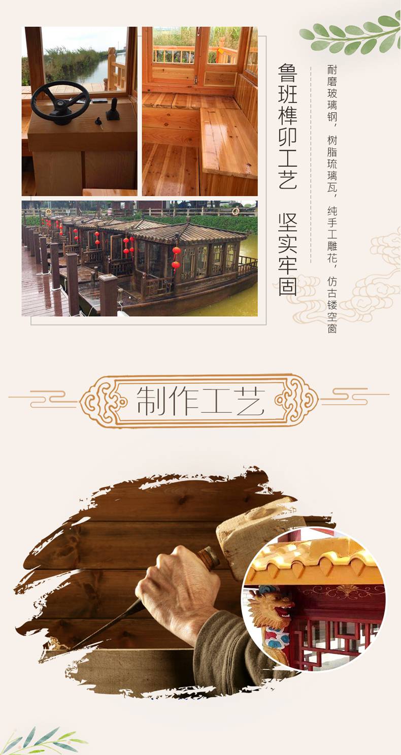 周氏木船玻璃钢4-6人电动游船5米旅游观光画舫船
