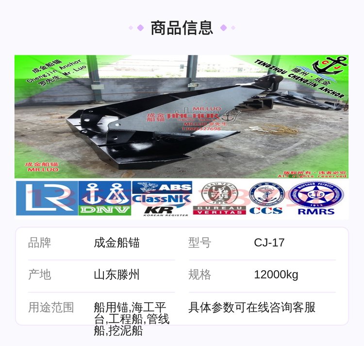 锚的用途 | 船舶停泊、定位、避风等 | ||