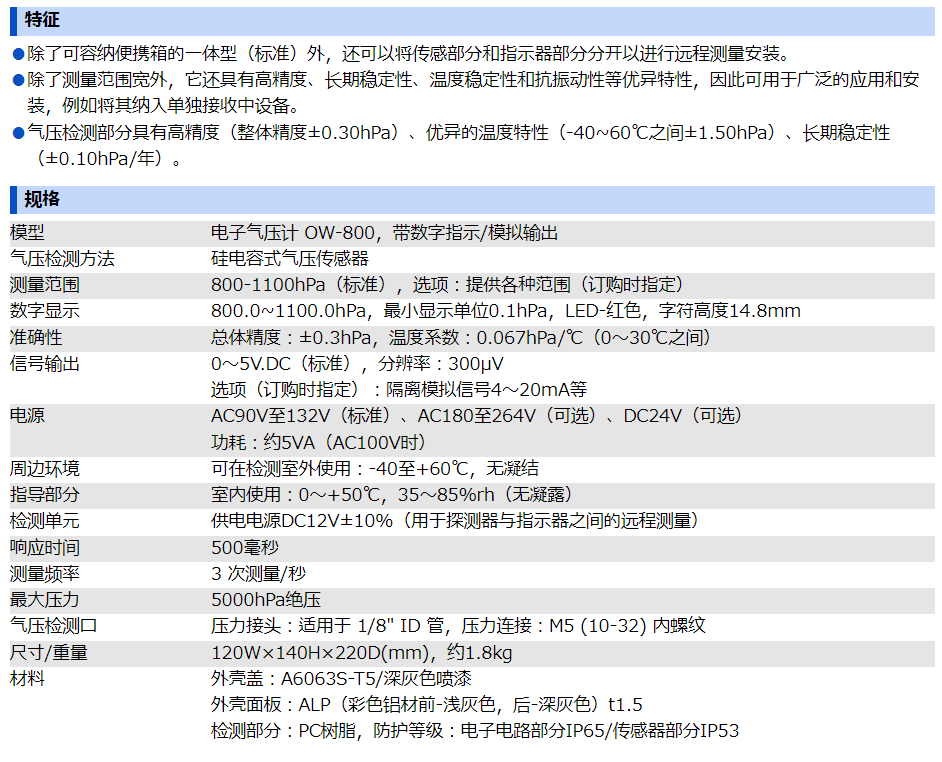 进口经销OTAKEIKI大田计器OW-800电气式气压计