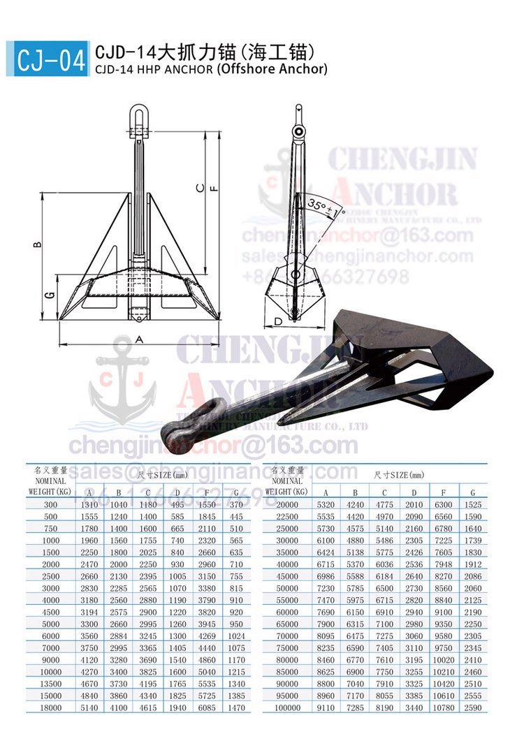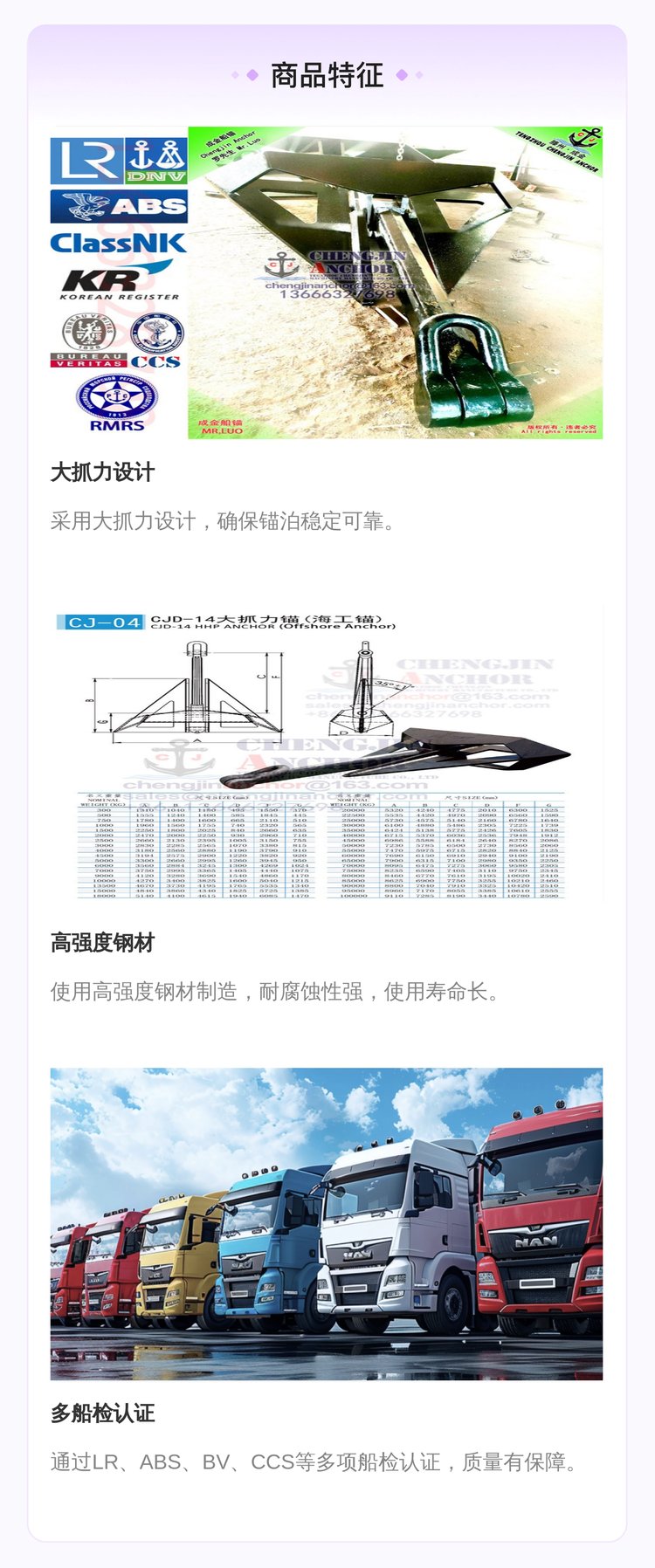 产品特性 | 大抓力,稳定可靠,适用于多种海洋环境 | ||
