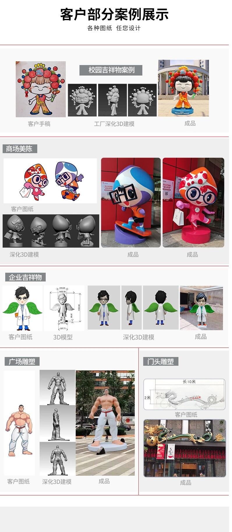 四川汉驰景观工程有限公司成立于2010年,前身是成都汉驰环境工程有限公司,因扩大生产需要,于2016年5月1日迁至乐山市市中区白马镇临近乐山大佛,公司经当地推荐,正式成立于四川汉驰景观工程有限公司,拥有独院厂房,占地面积约8000平方米,2016年8月正式被业界为专业生产加工基地。整个园区以10几个工艺区组成,分别设有雕塑车间,制模车间,翻模车间,精打磨车间,五金铁艺车间,美工及木工车间,包装车间,展示厅,办公区域等,公司富有艺术创作能力及创新能力雄厚,目前拥有一支高水平的雕塑师,制模师,钢结构工程师以及经验丰富的安装施工团队,成为四川专业制作文化创意产品加工生产基地。公司具备完善的制作能力,以追求卓越为导向,坚持宁缺毋滥为原则,始终立于雕塑业发展前列。专业从事FRP制品,商业美陈制作,环境艺术制作,主题公园造型包装,品牌形象展览,玻璃钢工艺品,大型城市雕塑,景观雕塑等产品为主的现代创意制作艺术公司,长期致力于公共艺术,服务于宜宾五粮液集团,万达集团,万科地产,蓝光地产,保利集团石象湖风景区,IFS国际金融中心,环球购物中心,成都欢乐谷,中国西部国际珠宝文化创意中心,龙湖天街,银石广场,凯德广场,茂业百货,伊藤洋华堂,仁和春天,国色天香等商业购物中心及商业体景区。
