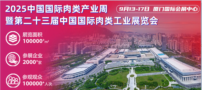 2025年9月15-17日,中国国际肉类产业周暨第二十三届中国国际肉类工业展览会将在厦门国际会展中心举办。展期3天,展览面积将超100000平方米,预计将有国内外2000余家企业参展,100000+专业观众莅临现场洽谈采购。