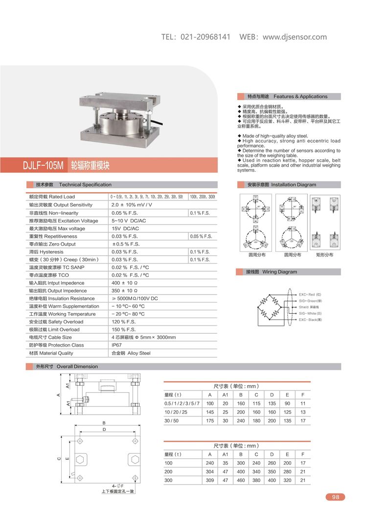 输出灵敏度:2.0 ± 10% mV\/V