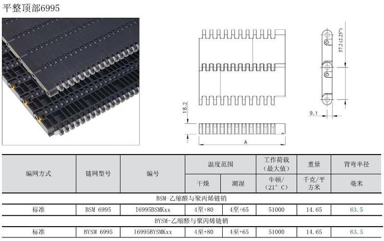 平整顶部6995 6990-系列 塑料模块化链网? REX MATTOP模块化链网
