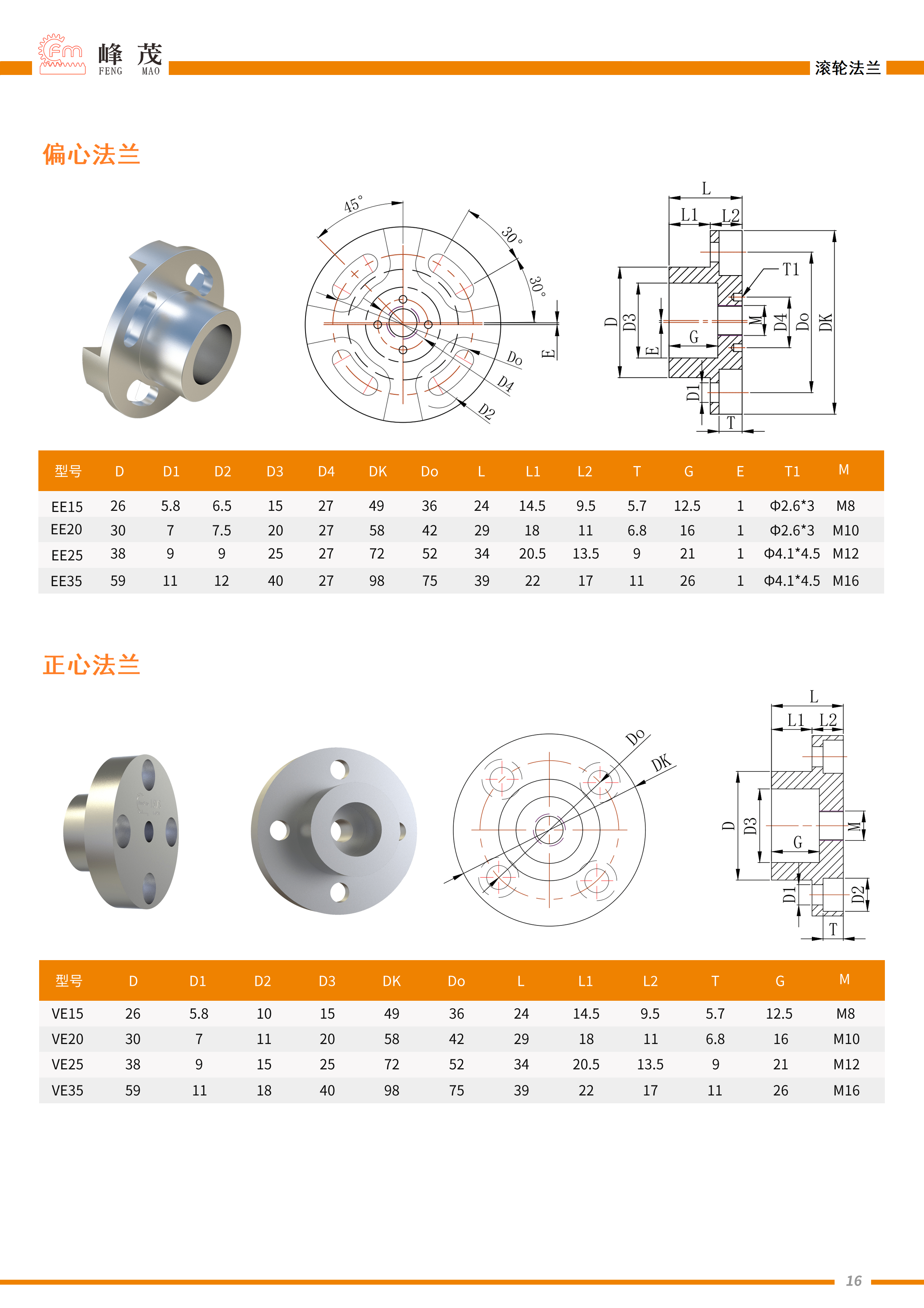 峰茂V型/平型导轨滚轮偏心/正心15 20 25 35安装固定用法兰座 是否支持加工定制 | 是 | ||