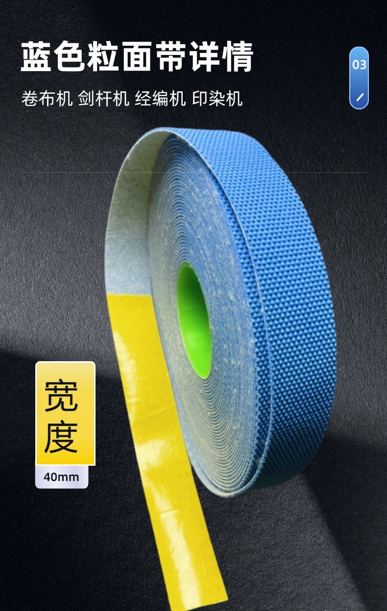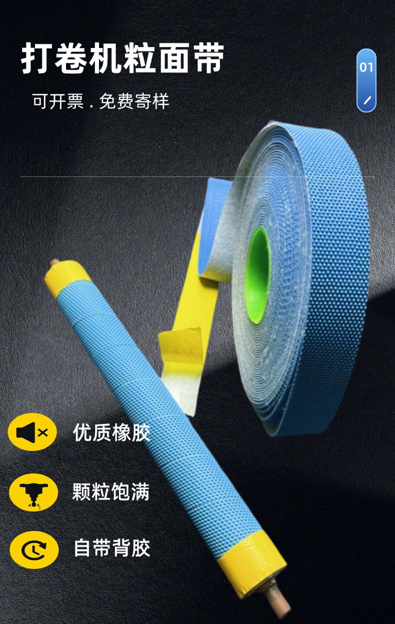 蓝色麻头粒面带背胶橡胶皮粒面防滑带颗粒饱满