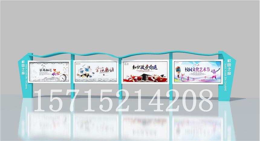 展示栏就是小型的宣传栏和提示牌,学校根据自身的情况,会对小型的展示栏有需求。(1)材质:主要是不锈钢和镀锌板。(2)尺寸:通常这一类展示栏都是个性化设计,所以一般都是根据学校的要求和展示栏所放的位置定尺寸。高度通常不会超过1.5米长度不超过1到1.5米主要还是根据设计部门提供的设计尺寸图。(3)安装:展示栏分两种,一种是立地式的,一种是挂墙式的。立地式的安装方式根据安装位置的不同分为打眼固定法和直接下埋法。挂墙式就是直接打眼用膨胀螺丝固定在墙面上。(4)报价:这类小展示栏根据尺寸图具体报价。