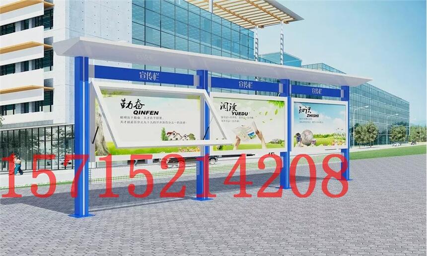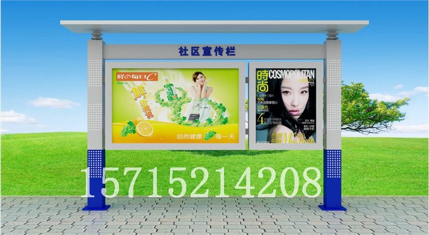 江苏公交站台候车亭厂家不锈钢宣传栏学校公告栏我们是宣传栏制作生产厂家为您提供各类定制款室内外宣传栏,广告灯箱,公交候车亭,太阳能灯箱,LED灯箱,旗杆,花草牌,广告机等。产品特点: 1、制作灯箱材料:不锈钢、镀锌钢板.冷轧板、塑钢等; 2、制作面板材料:钢化玻璃、有机玻璃、耐力板等; 3、宣传栏开启方式:液压支撑杆,节省人力,双面开启; 4、宣传栏制作备选设备:滚动系统、路牌、LED; 5、宣传栏型号外观:结构合理、美观大方、经久耐用; 6、宣传栏规格大小:自由选择、定制; 7、定制滚动功能:可换画2~10幅,画面停留时间可任意设定,自动开关机,自动循环运转 8、箱体数控设备生产,机械精度高,工艺有保证,防水,防尘,抗静电设计; 9、宣传栏外观设计:颜色任选,喷塑、喷漆;挂壁式、落地式、吊装式、组合式;10、定制画面:单面转画、双面转画、单面固定、江苏公交站台候车亭厂家不锈钢宣传栏学校公告栏双面固定;画面材质为高精度数码丝印(防水、防紫外线照射)。 11、宣传栏制作灯箱材质:不锈钢板、镀锌板、冷板烤漆; 12、宣传栏箱体视窗材质:PC耐力板、钢化玻璃。