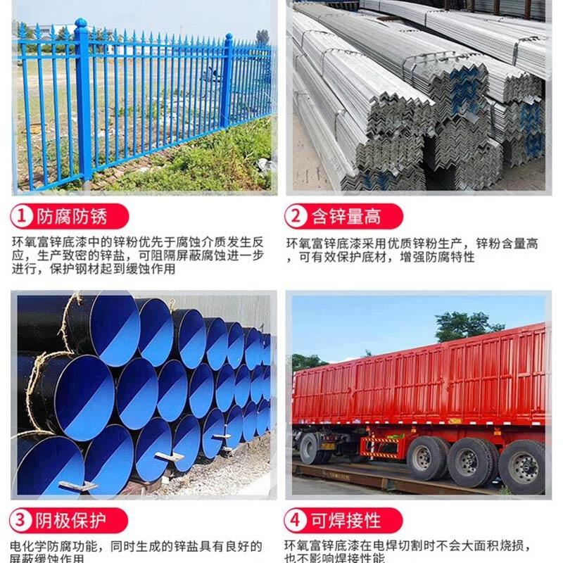 环氧富锌底漆是以环氧树脂、锌粉为主要原料,增稠剂、填料、助剂、溶剂等组成的特种涂料。主要用于钢管、储罐、钢结构、集装箱等。