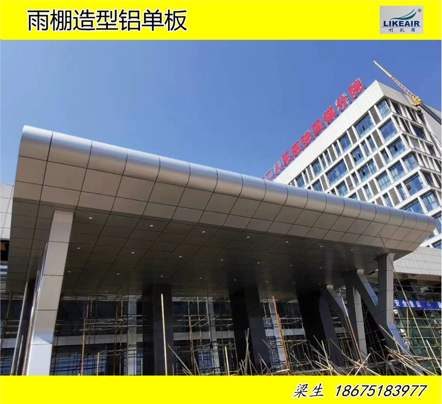 1、写字楼酒店雨棚铝单板设在建筑物出入口或顶部阳台上方,用以遮挡雨水和保护外门免受雨水浸蚀的水平构件。