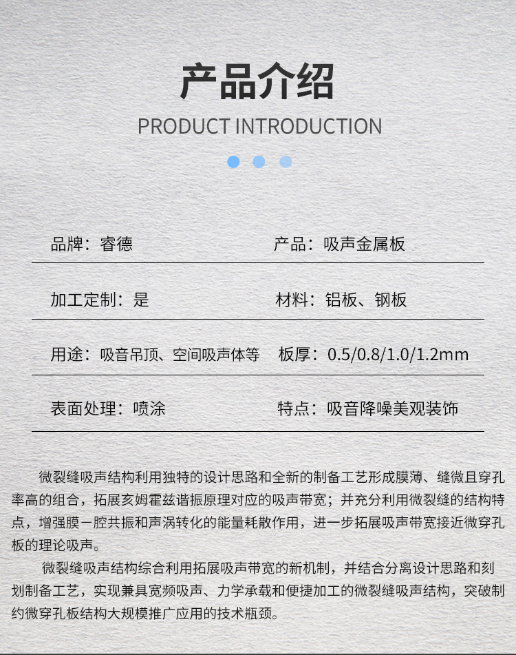 rayde微裂缝吸声板 声学设计 吸声降噪 A级防火阻燃环保材质 金属吸声板厂家