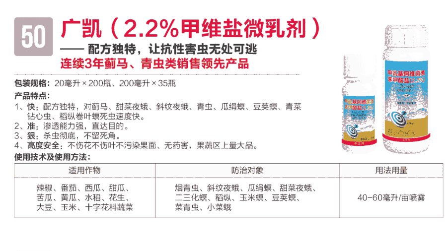 1、触杀+胃毒+强渗透,真正死虫快、持效长。