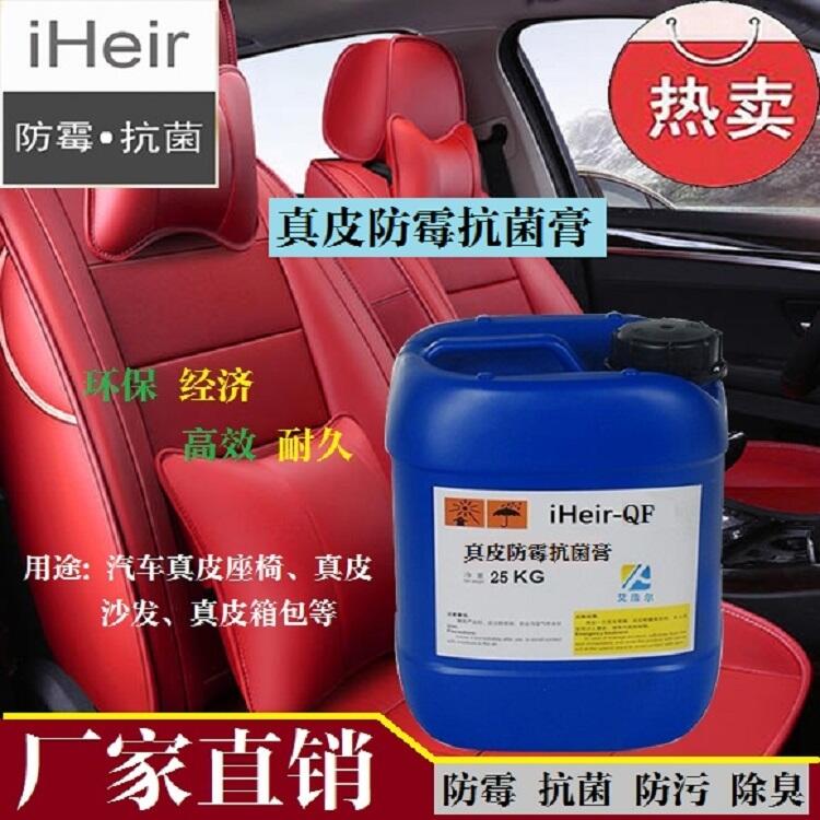 iHeir-QF 真皮防霉抗菌膏为白色膏状液体,由多种天然光亮剂、水解丝肽营养保护剂、水性成膜剂,采用纳米抗菌材料和有机安全高效抗菌剂复配而成。属于非释放型的处理剂,不渗失、不游移,也不会被微生物所消耗,以特殊的机械式杀菌(表面进行涂抹),将赋予处理后之基质优越之耐久性,并且对微生物抗菌具有独特的防护功能,以防止微生物所引起的危害,延长皮面的使用寿命,并能强力去污、不伤皮面、防静电、快干、不留痕*迹,且能使处理后饱满手感及增加产品价值感。作为耐久性抗微生物处理剂,它具有广泛的抗菌活性。对诸如霉菌、藻类和酵母菌都有耐久性抗菌效果。